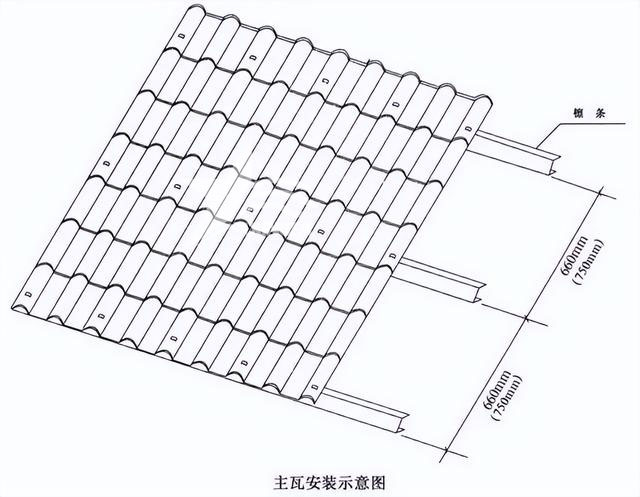 主瓦是屋頂覆蓋材料的核心,因此它的安裝非常關(guān)鍵。在兩坡屋面的情況下,主瓦的安裝需要特別小心。首先,確保一側(cè)波峰的中心與參考線(通常是CC1或DD1線)重合。主瓦的上部和下部都應(yīng)與參考線平行,并從一側(cè)開始逐行安裝。第一張瓦片的安裝尤為重要,要確保瓦底邊垂直不傾斜,位置擺正后,將其固定在最下端的檁條上。為了防止單向搭接造成的傾斜和不平整,主瓦橫向安裝時(shí)要一上一下排列,即第二張瓦片扣壓第一張和第三張瓦片,以此類推。在安裝過(guò)程中要不斷檢查瓦底邊與施工線的垂直度,確保無(wú)誤后再將固定件安裝齊全。