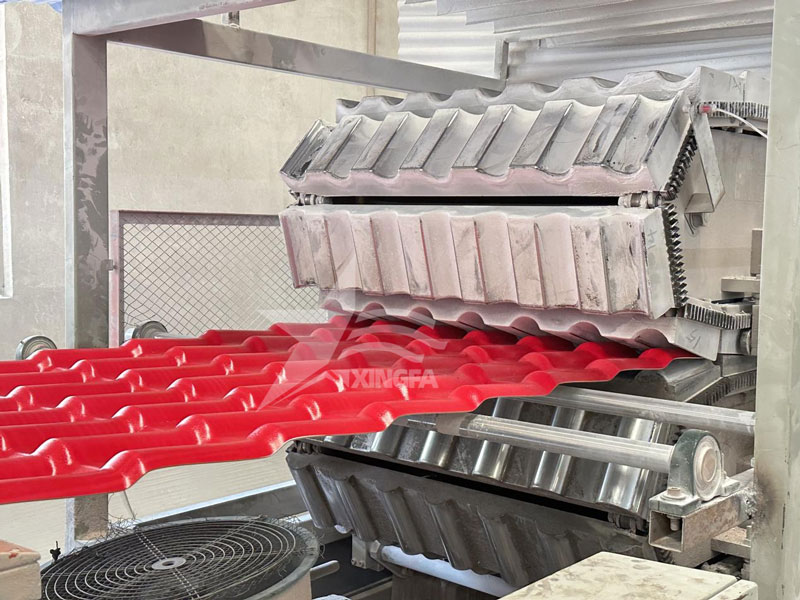 3. 硬化: 成型后的樹脂瓦進(jìn)入硬化室,經(jīng)過精密的硬化處理。這一過程不僅提高了樹脂瓦的強(qiáng)度,還增加了其耐久性,確保在各種惡劣天氣條件下都能保持穩(wěn)定的表現(xiàn)。